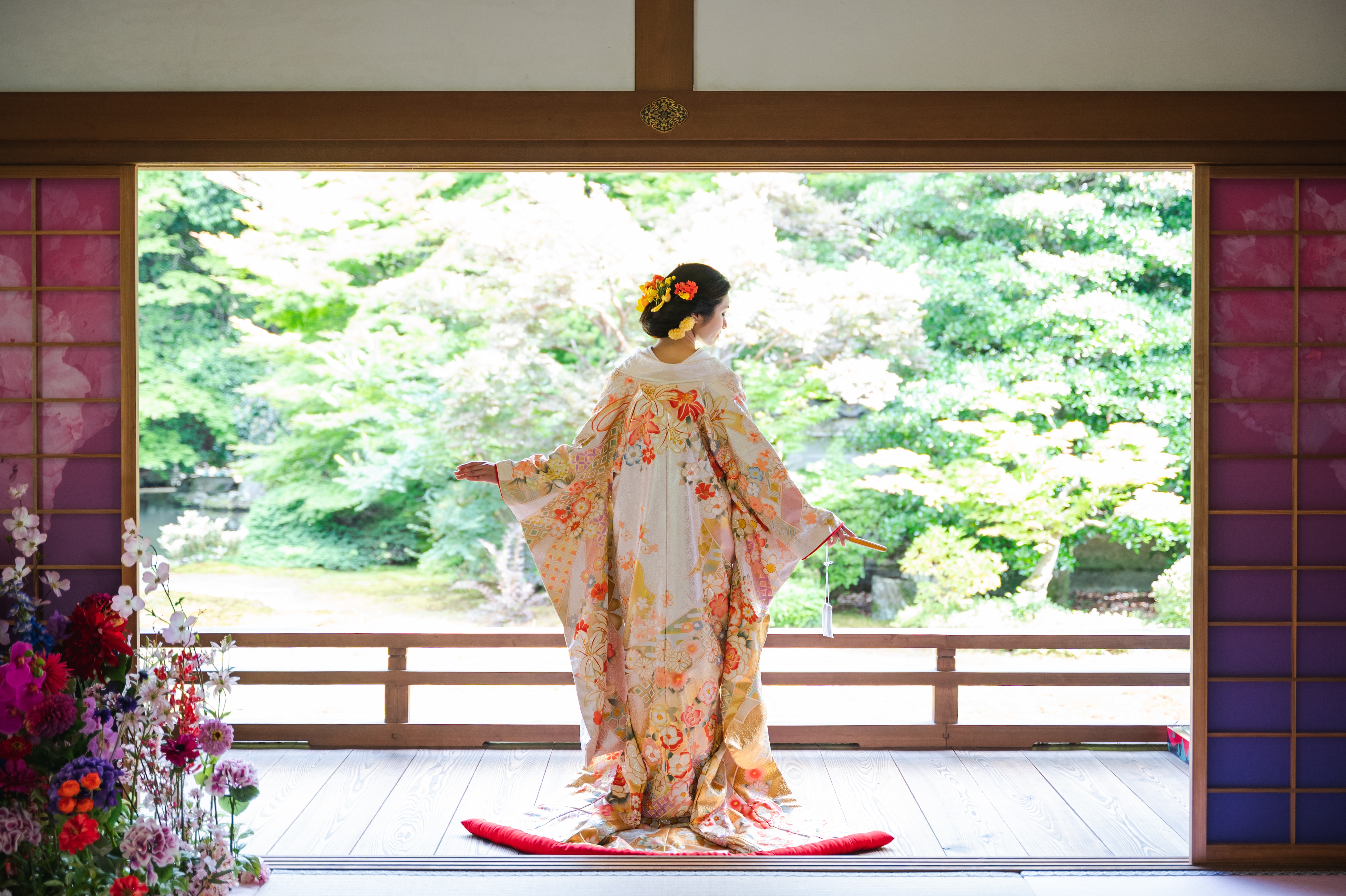 京都の打掛(和装花嫁衣装)の伝統工芸士が着物づくりの技術を様々な作品に転換して制作しました。